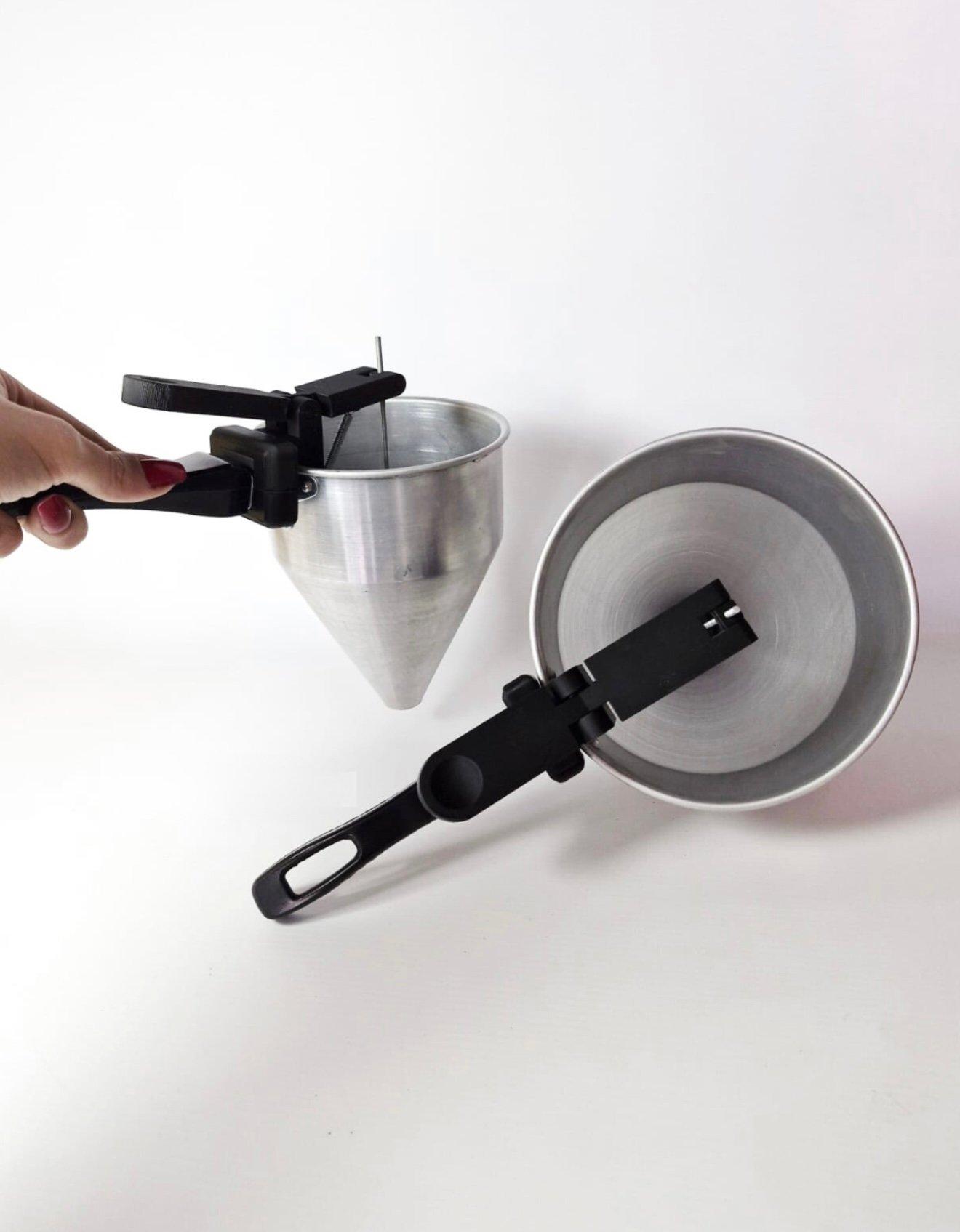 Embudo dosificador diseñado para facilitar el llenado de moldes y envases, ofreciendo un control preciso y una experiencia de trabajo más limpia y eficiente.