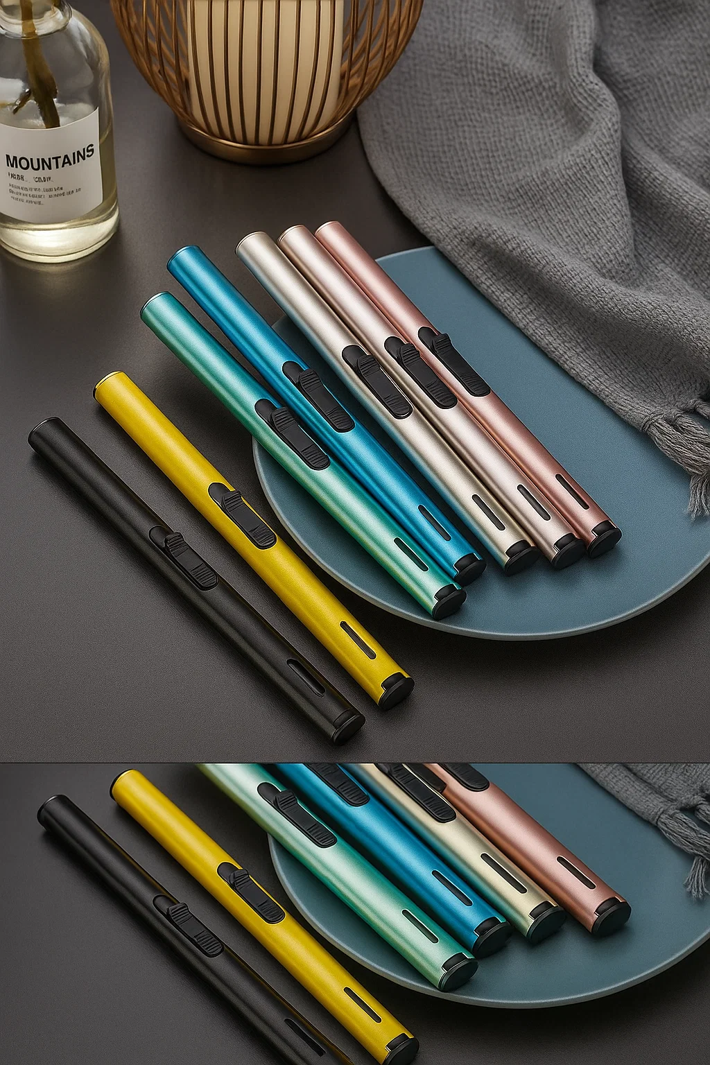 Encendedor largo y delgado, diseñado específicamente para prender velas con seguridad y estilo. Su formato permite alcanzar fácilmente el fondo de los envases sin quemarse.